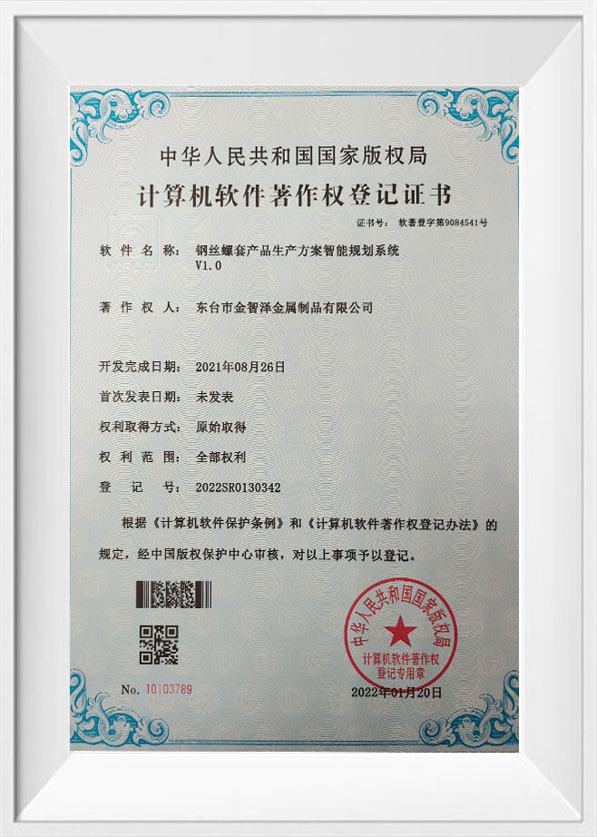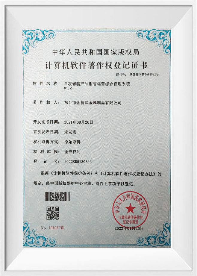 Certificat d'enregistrement des droits d'auteur sur les logiciels informatiques